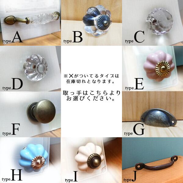 ※取っ手写真に×がついているタイプは在庫切れとなります。